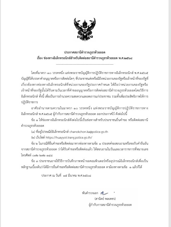 วันนี้ (7 พ.ย.68) พ.ต.อ.สานิตย์ พลเพชร ผกก.สภ.ห้วยยอด ป...