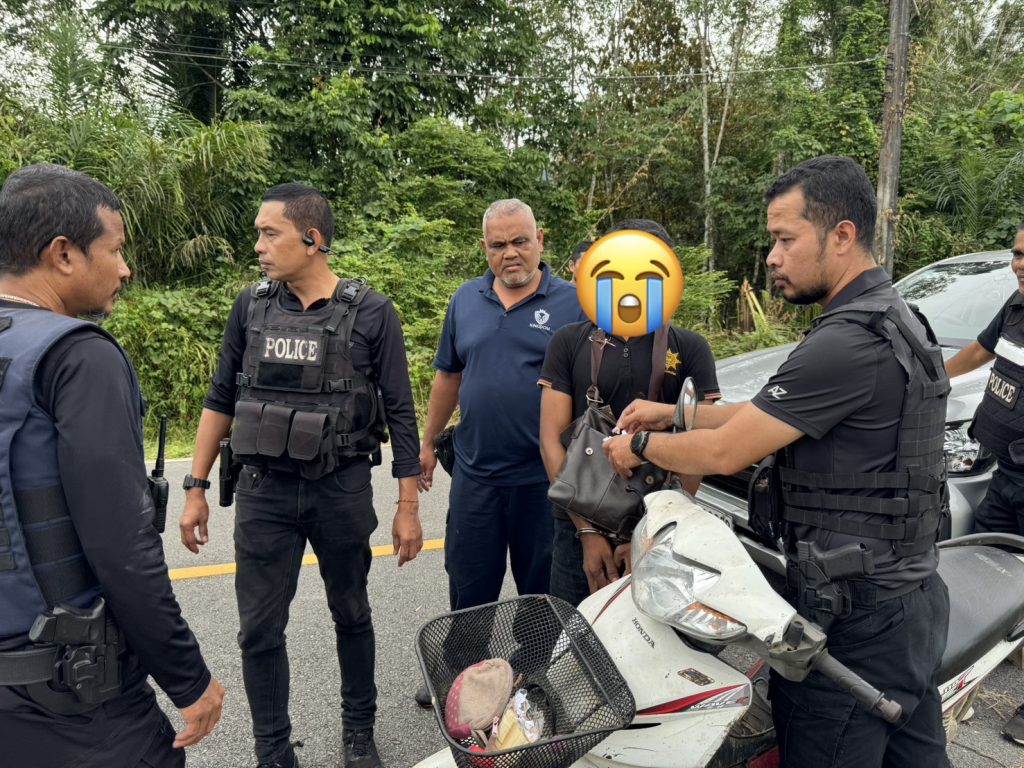 สถานที่จับกุม บริเวณริมถนนบ้านในเหยา – เหมืองคลา หมู่ที่ 4 ตำบลห้วยยอด อำเภอห้วยยอด จังหวัดตรัง